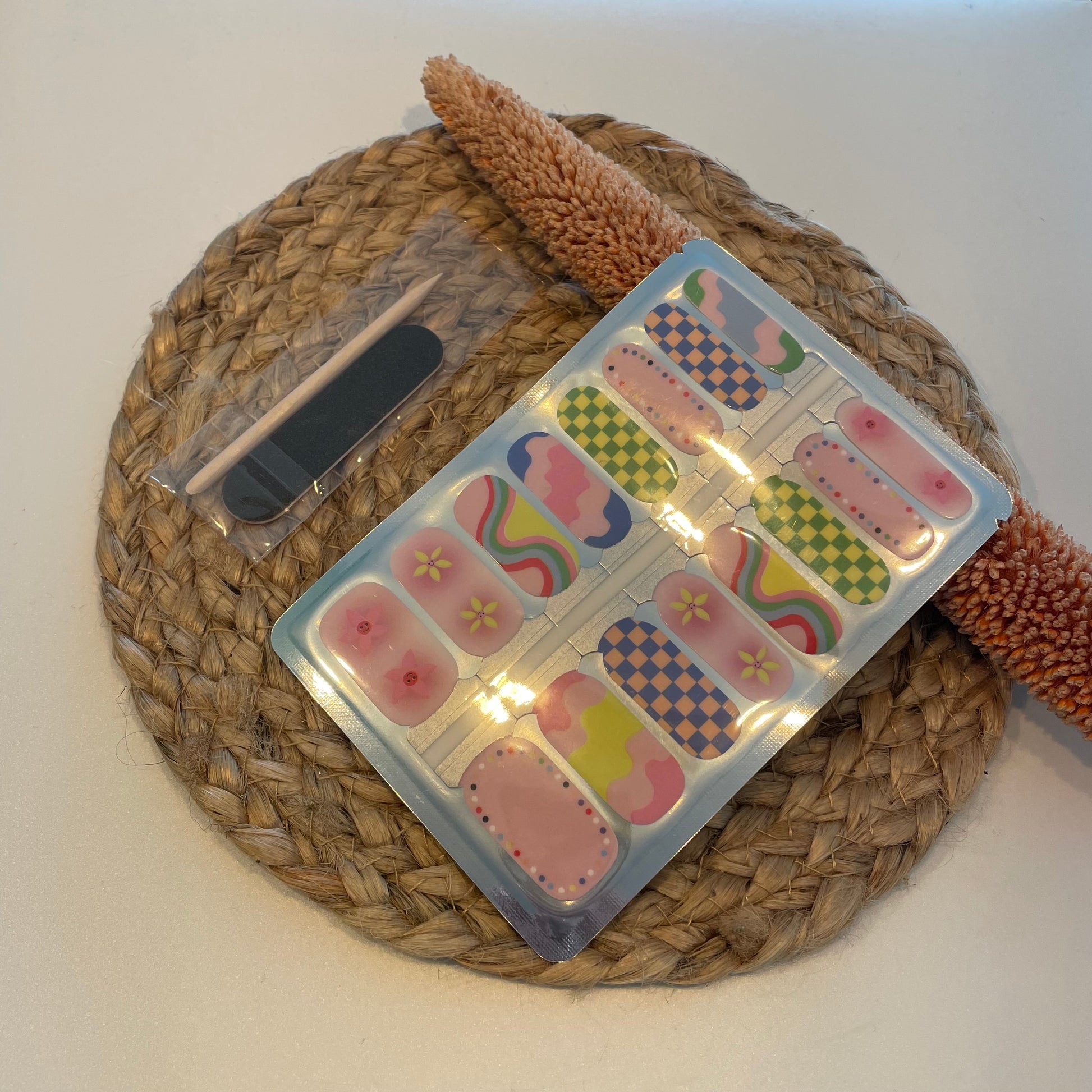 Als alle wraps geplakt zijn, doe je er nog een doorzichtige topcoat over heen. Dit biedt net iets meer bescherming. Houd er rekening mee dat de nailwraps nog even goed moeten hechten. Vermijd watergebruik de eerste paar uur of doe het voordat je gaat slapen. Dan blijven de nagels het langst mooi!
